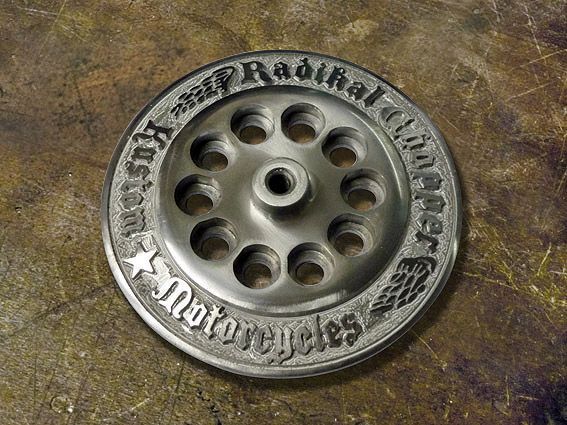 INCISIONE LOGO SU BORCHIA PER FORCELLA MOTO CUSTOM